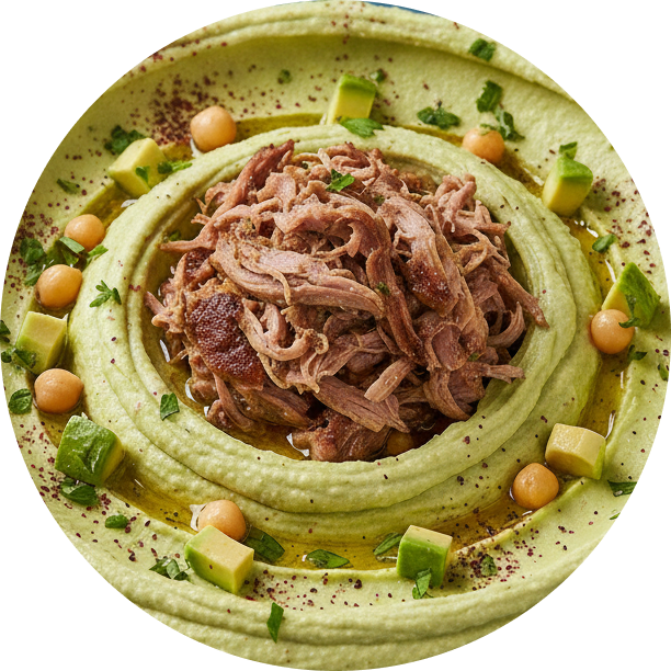 Creamy chickpea blend topped with olive oil, black olives, and a hint of paprika for authentic Mediterranean flavor.